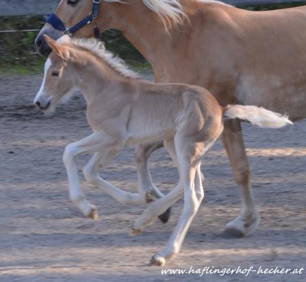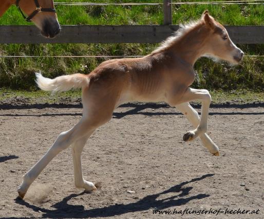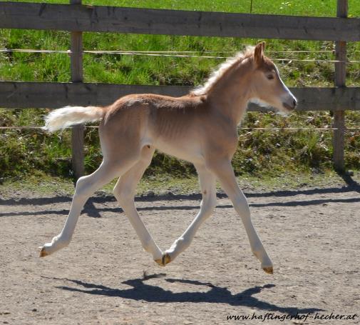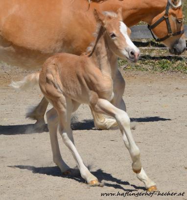 Mit Stryker feiern wir ein kleines Jubiläum auf unserem Haflingerhof, denn es ist bereits das 20.Hengstfohlen, das von uns selbst gezüchtet wurde, und auf unserem Hof auf die Welt gekommen ist. Für unsere Verbandsprämienstute Feenzauber ist es ihr zweites Fohlen. Stryker zeichnet sich schon jetzt durch sein großrahmiges Seitenbild ähnlich seiner Mutter aus. Stryker rundet unseren Fohlenjahrgang 2016 ab und wir freuen uns sehr auf die Entwicklung unserer vier Fohlen. |